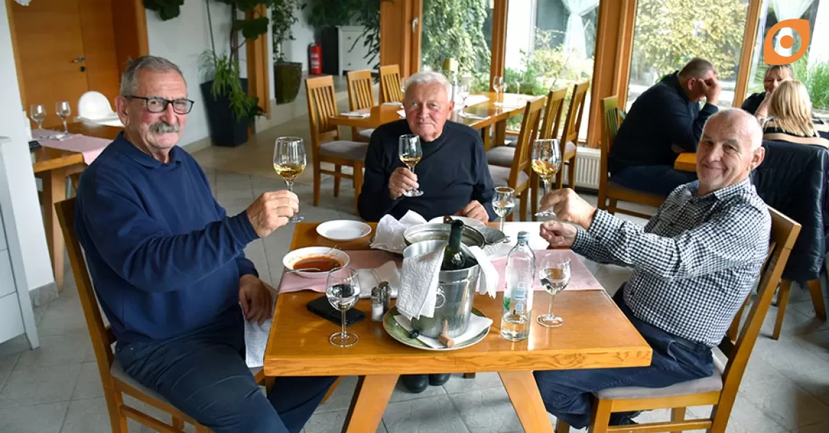 Završetak berbe grožđa dobar je razlog za okupljanje doajena kutjevačkog vinogradarstva i podrumarstva Ive Enjingija iz Hrnjevca, Vlade Krauthakera iz Kutjeva i Ante Miličevića iz Požege. koji vinograd ima u Mitrovcu pokraj Kutjeva, inače dobrih prijatelja.