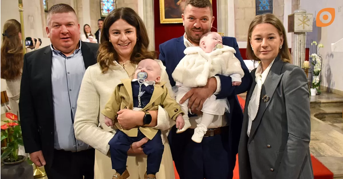 Krštenje je uvijek poseban dan u životu jedne obitelji, no kad su u pitanju blizanci, sve postaje – dvostruko radosnije, toplije i svečanije! Tako je bilo i ove nedjelje u Župnoj crkvi sv. Duha u Požegi, gdje su Patricija Peica i Ivan Kuštre Kovačević krstili svoje mališane – Doru i Lovru, simpatičnu seku i bracu koji su već sada glavne zvijezde obiteljske priče.