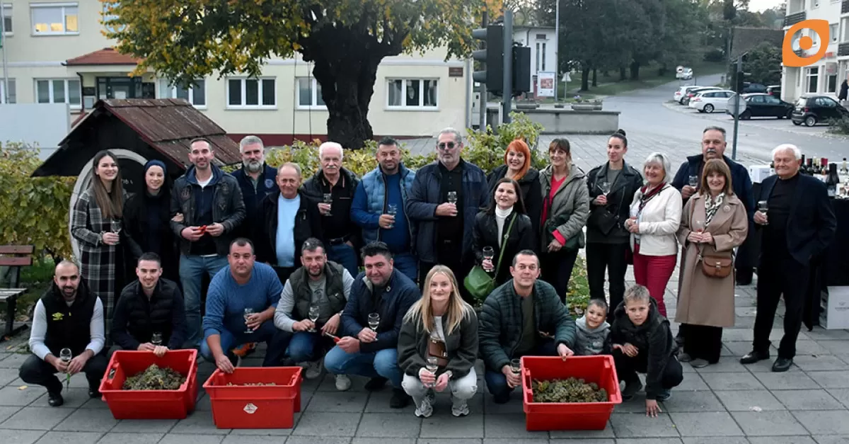 Na kutjevačkom Trgu graševine, Udruga vinara i vinogradara Kutjevački vinari svečano je obilježila završetak berbe grožđa iz simboličnog gradskog vinograda koji se nalazi nasuprot Gradske kuće.
