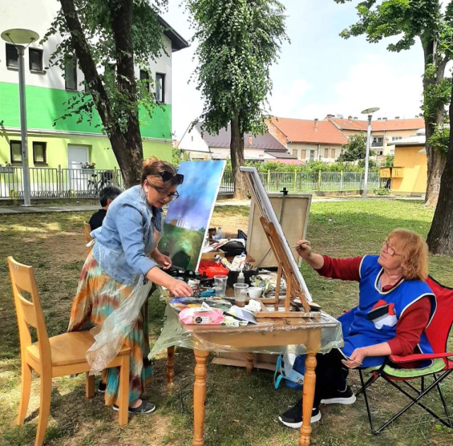 -Ove slike bit će prikazane na zajedničkim izložbama naših slikara, a poklanjamo ih pojedinim udrugama u humanitarnim akcijama, te gradskim institucijama s kojima surađujemo. Slike su namijenjene i za donacije, a svi zainteresirani mogu ih pogledati-kazala je Melita Grgić, tajnica Udruge „Matko Peić“, te je dodala da su slikarima osigurali platna i boje, Druženje je nastavljeno uz zajednički prigodni domjenak, a pritom su gostima svoje literarne uratke predstavili članovi Udruge Ivan Abibović, Đurđa Crnković i Davor Zakšek.