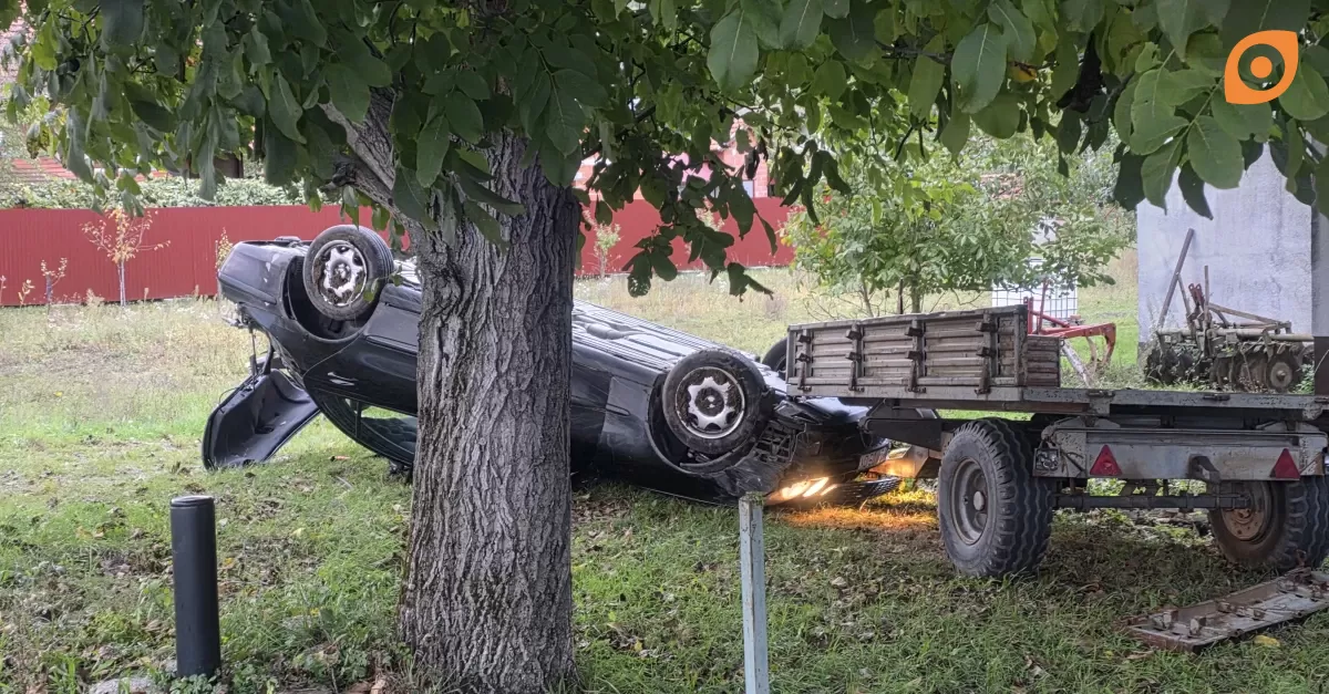 Jutros nešto prije sedam sati došlo je do prometne nesreće u Trenkovu kada je osobno vozilo marke Mercedes, iz zasad neutvrđenih razloga, sletjelo s ceste i završilo na krovu.