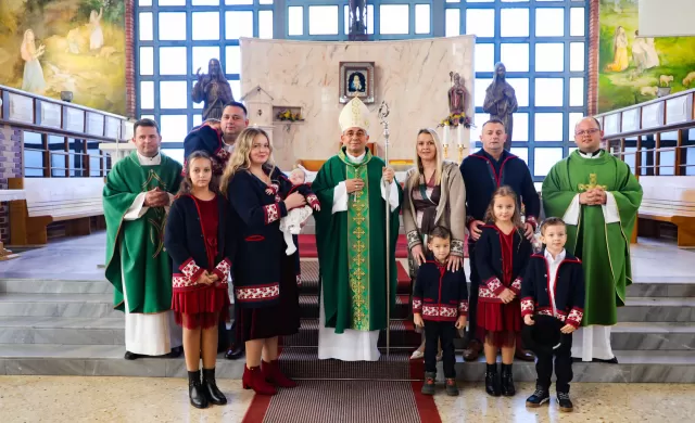 Peto dijete roditelja Stanišić iz Pleternice krstio biskup Ivo